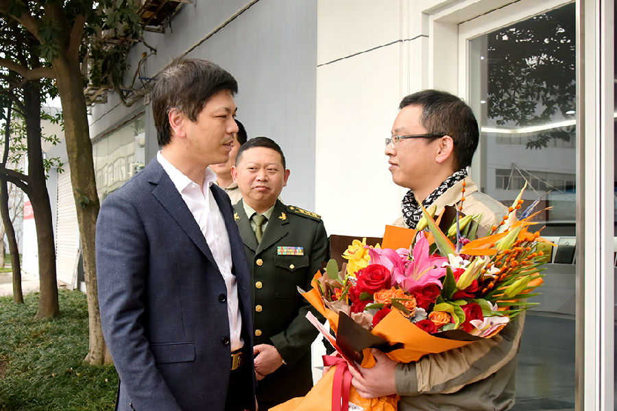 1月25日,瓯海区委副书记、区长曾瑞华率区领导何念国、黄建春、沈岩明等一行人走访华联机械集团慰问省级一线劳模代表刘毅,送上新春祝福。