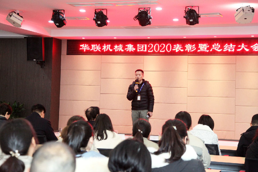 2021年1月30日,华联机械集团2020年度表彰暨总结大会在集团公司南区行政楼4楼多媒体室举行。集团董事长蒋德福、总经理蒋琪、常务副总薛瑞洪出席会议,会议由集团总经理秘书吕小文主持。