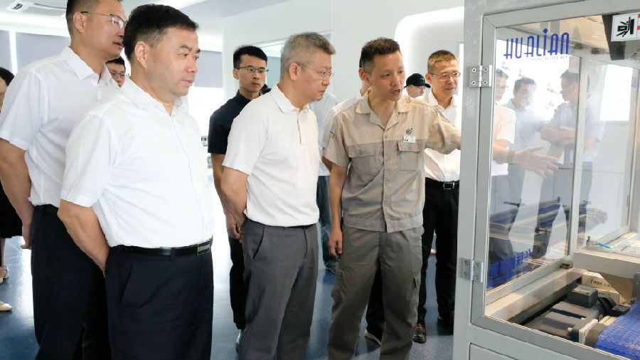 7月22日,温州市副市长汪驰在市政府副秘书长徐海严、市经信局局长贾焕翔、瓯海区领导林照光陪同下走访调研华联机械集团,总经理蒋琪热情接待。